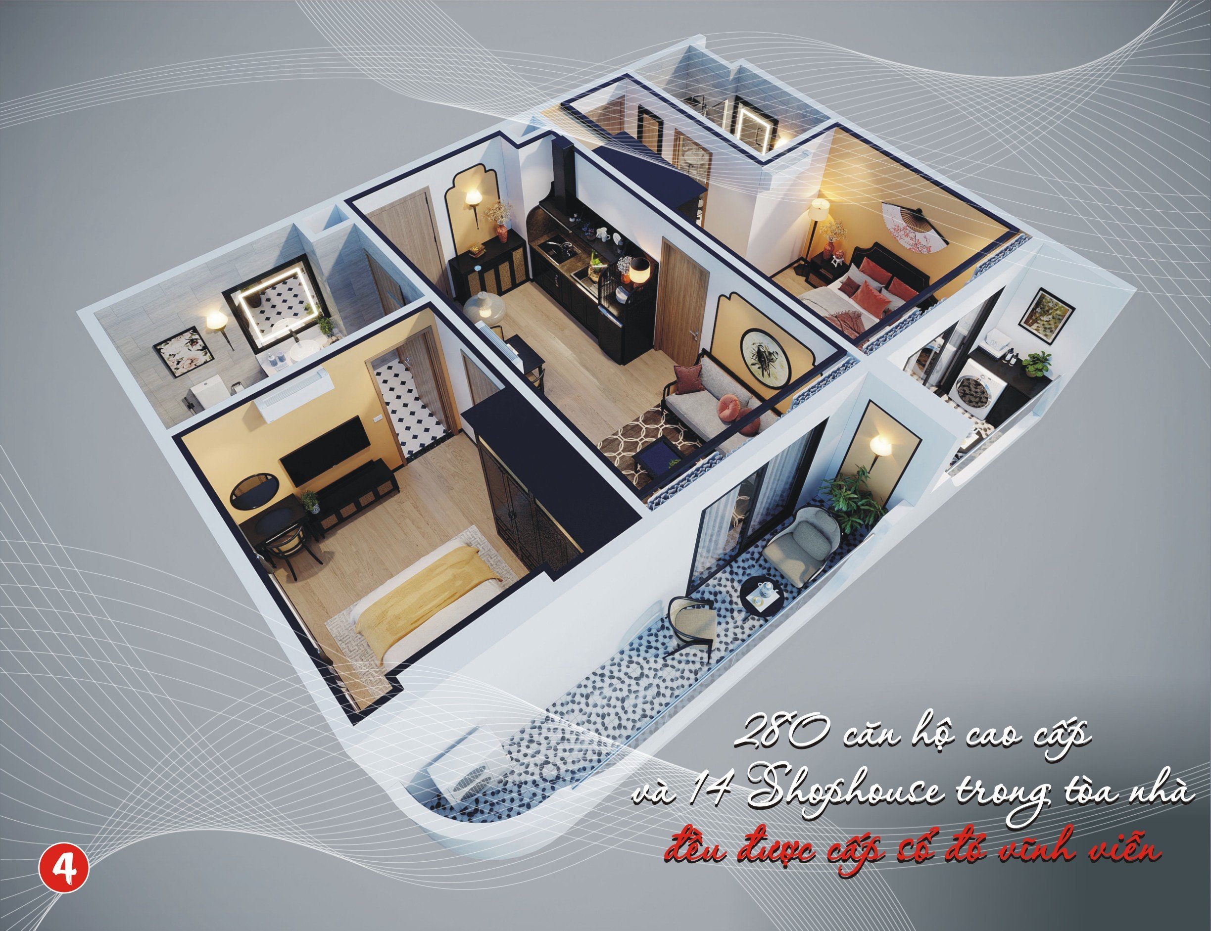 Toàn bộ tòa nhà bao gồm 280 căn hộ + 14 shop house đều được cấp sổ đỏ sở hữu vĩnh viễn, giúp gia tăng giá trị căn hộ và dễ dàng thanh khoản.