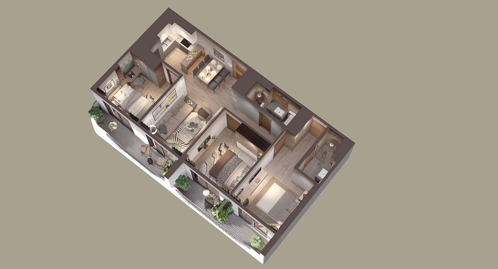 Căn hộ 3 phòng ngủ, phục vụ cho 3 thế hệ