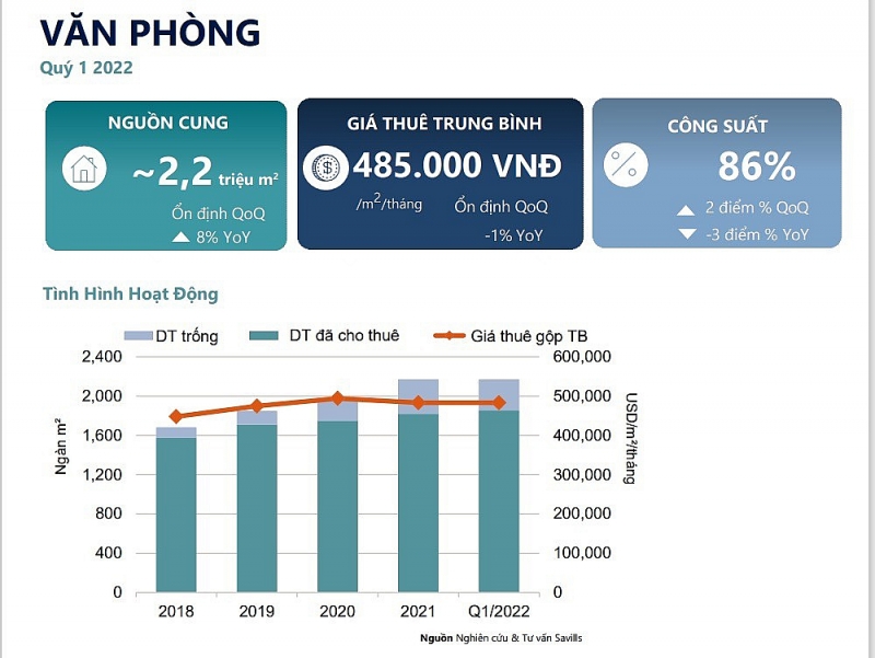 Hoạt động cho thuê văn phòng dự báo sẽ tiếp tục diễn ra mạnh mẽ trong năm 2022. Ngành ICT cùng với tài chính ngân hàng, bảo hiểm và bất động sản tiếp tục có số lượng giao dịch lớn trong quý I. Xu hướng văn phòng xanh sẽ đem đến nhiều lợi thế cạnh tranh khi mang lại không gian làm việc vừa góp phần bảo vệ môi trường cũng như tăng năng suất làm việc, thu hút và giữ chân nhân tài.