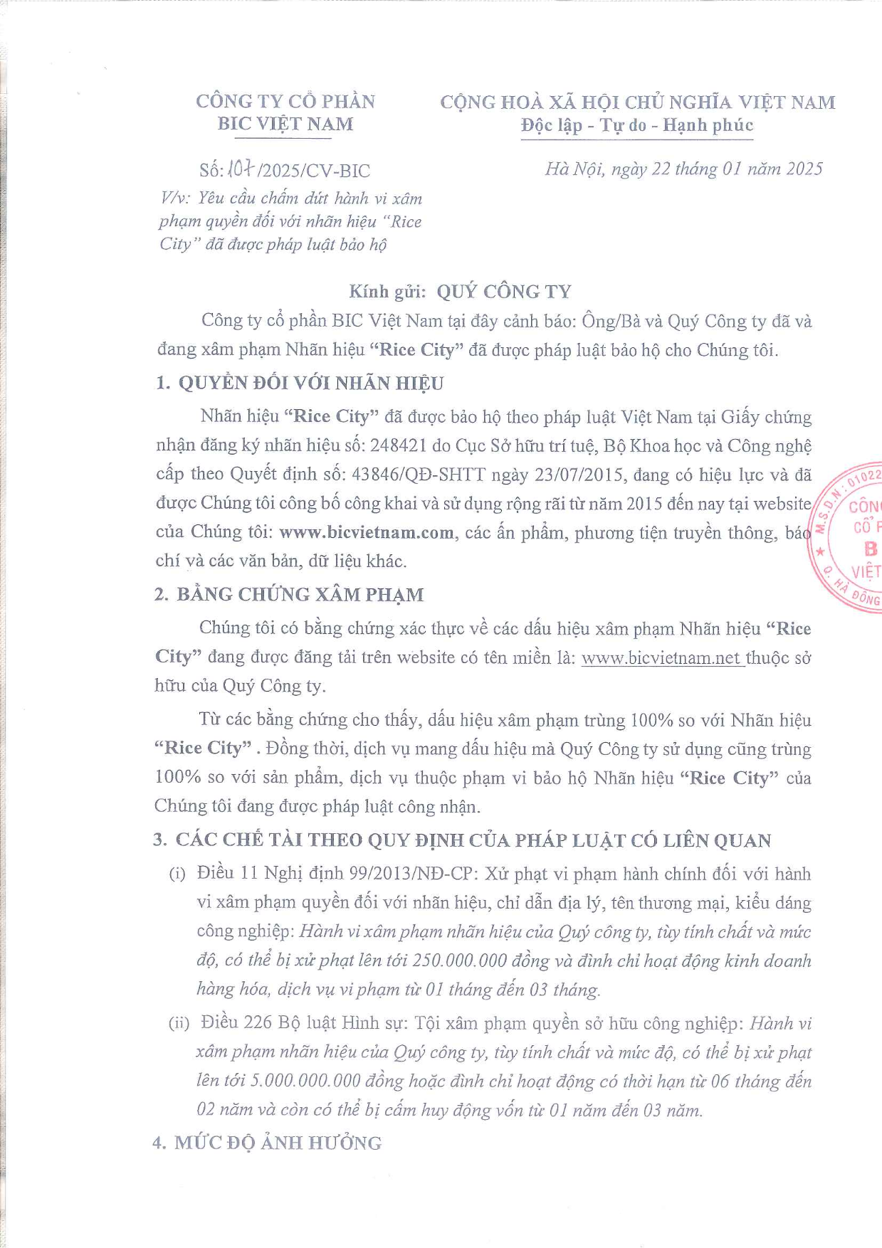 Thời gian qua, đã có nhiều phản ánh từ phía người dân về việc một số đối tượng giả danh nhân viên tư vấn, hoặc các đối tác ký hợp tác với BIC Việt Nam để tư vấn hồ sơ thu phí, yêu cầu người dân đặt cọc để mua suất nhà tại dự án nhà ở xã hội Thượng Thanh - Rice City Long Châu. Hành vi này không chỉ gây hiểu nhầm cho người dân mà còn có thể dẫn đến những thiệt hại tài chính lớn cho các hộ gia đình, đặc biệt là những người có nhu cầu về nhà ở.