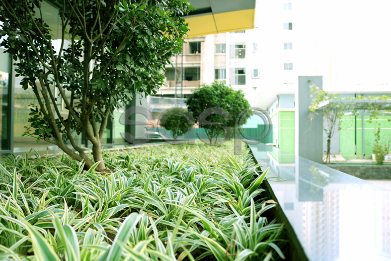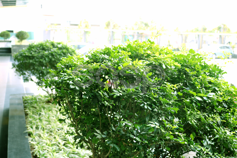 Hàng cây được nhân viên chăm sowcs xanh mượt tại sảnh chính